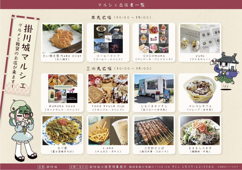 掛川のグルメや雑貨のキッチンカー&テントが大集合、お子さんからご年輩の方までお楽しみいただけます。